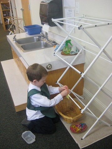 Brandon- hanging the cloth on the drying rack after washing it