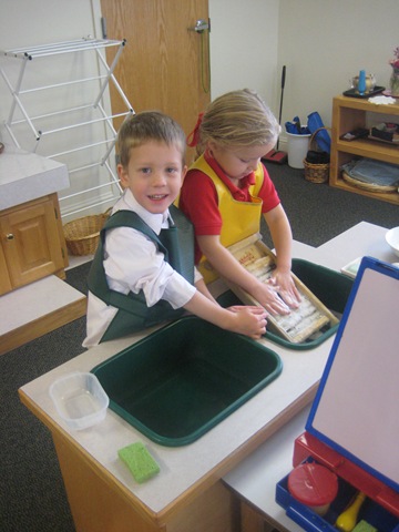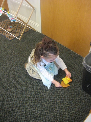 Cambree loves helping me make our classroom beautiful here she is sweeping up some flower petals from the flower arranging work she was doing