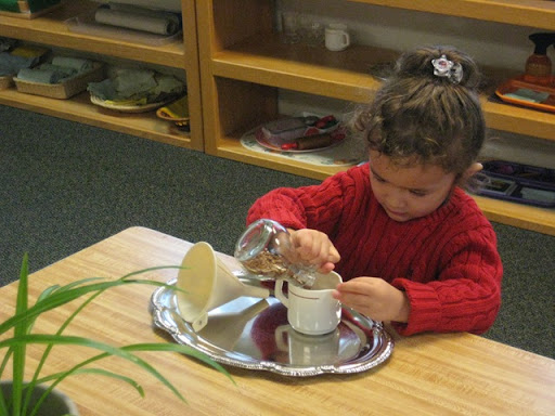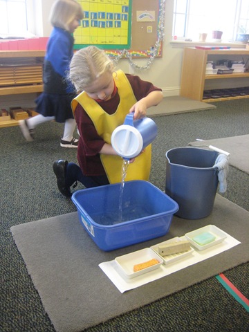 Cambree loves helping me make our classroom beautiful here she is sweeping up some flower petals from the flower arranging work she was doing