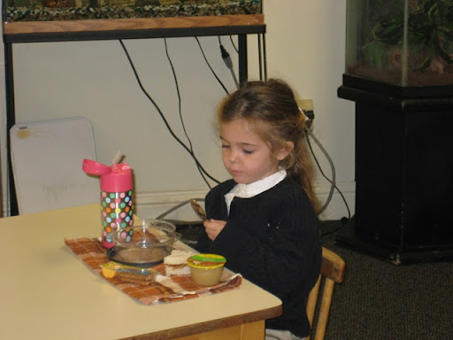 Sydney at lunch taking the first bite for the class